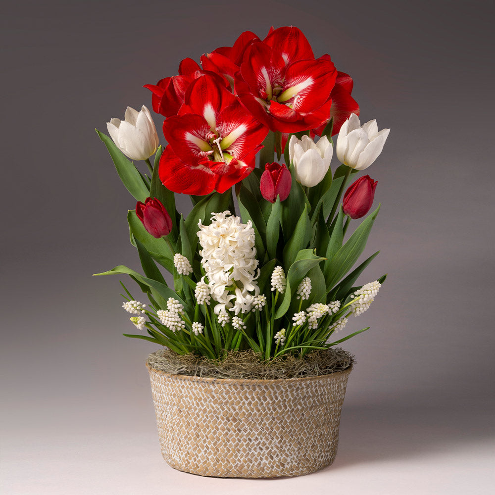 With food, family, and gift-giving, the festive winter months are busy enough. To reap the benefits of bright flowers without the effort, consider our Christmas Bulb Garden for your holiday season. These five white and red flowers will bring cheer to all of your gatherings!