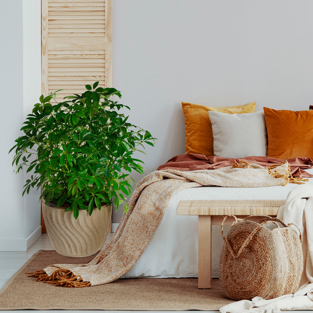These lush rainforest trees are versatile growers. Depending on your skill level, you can choose to grow your Dwarf Umbrella Tree as a bush, tree, or even as a bonsai (with a little effort, you can train the trunk into a braid!).