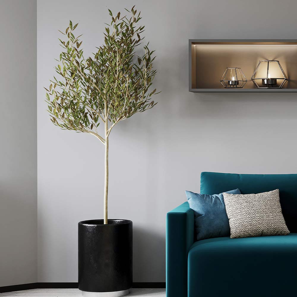 The Sikitita’s silver-green foliage and weeping structure creates stunning visual interest in any design style, indoors or out. However, this olive tree is especially beautiful in Mediterranean and contemporary garden aesthetics.
