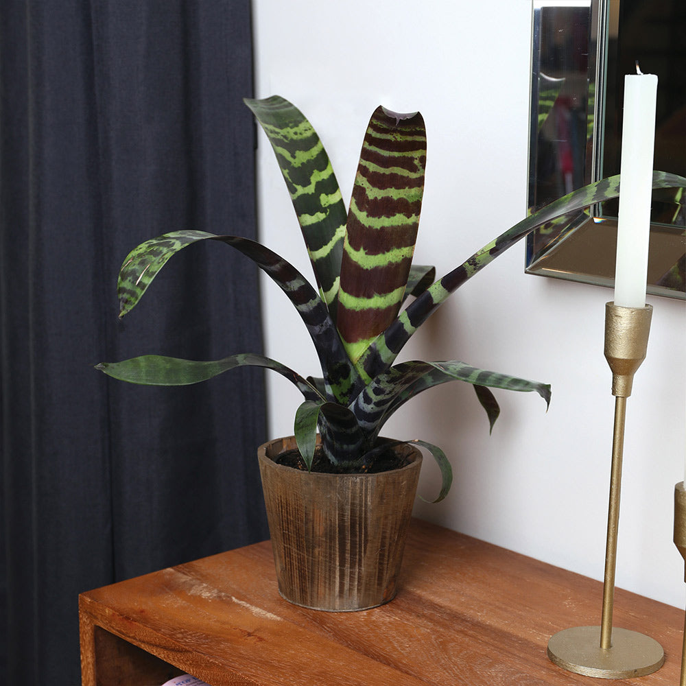 Strong, low-maintenance, and modern, the Zebra Plant is a favorite of the bromeliad family. This house plant comes pre-potted for easy gifting—pick the best fit for your aesthetic with a wood or jute container.